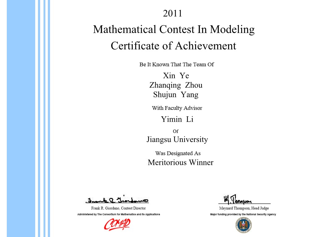 国际数学建模竞赛一等奖